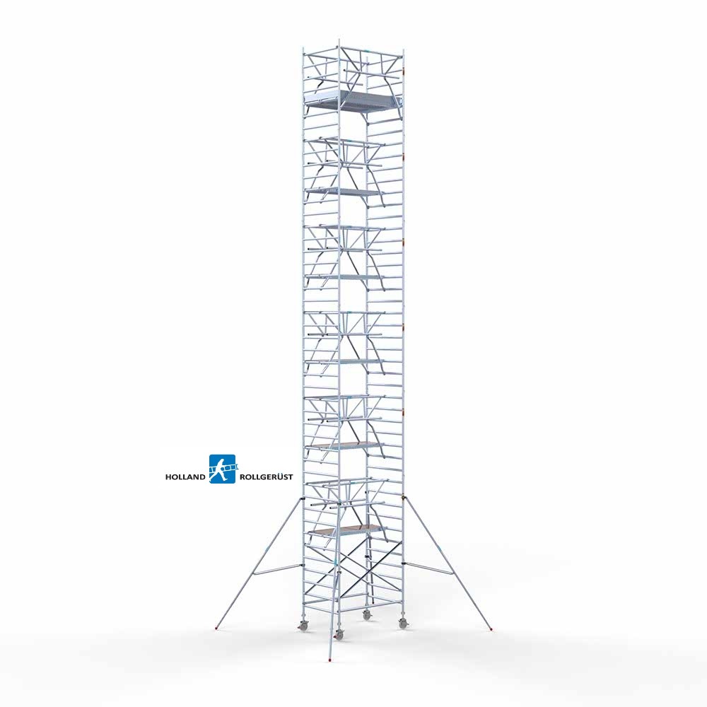 Safe Rollgerüst / Fahrgerüst mit doppelten Vorlaufgeländer 1.35 x 2.50 x 12.30 Meter Plattformhöhe (14.30 Meter Arbeitshöhe) – erweiterbar.
